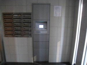 こちらの宅配BOXは、お荷物が入ると画面にお部屋号室が表示されるタイプ。