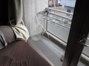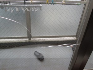 ひとまず、室内側、バルコニー側と養生テープを貼れさせて頂きました。