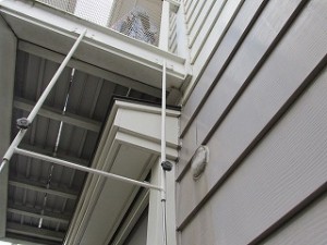 上の階のベランダからポタポタと落ちる水滴。