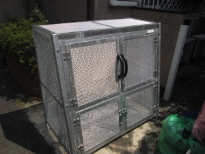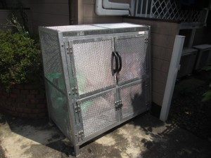 カラスよけネットでのゴミ捨て場でしたが、ゴミ箱を設置することで入居者様や、